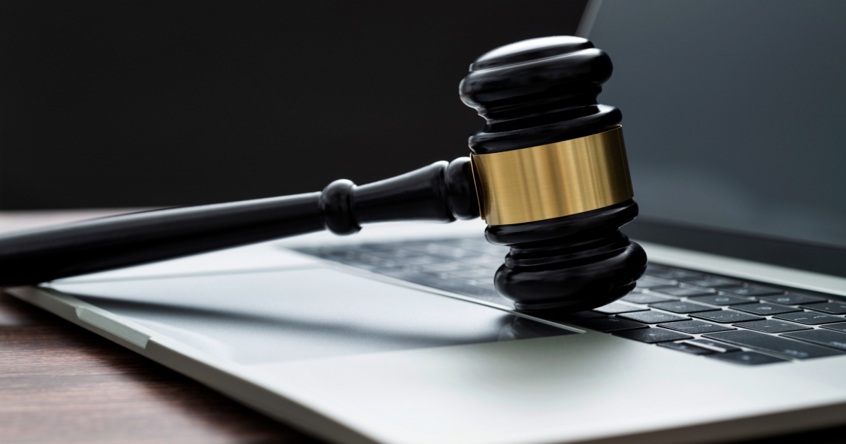 Gavel and laptop on the table